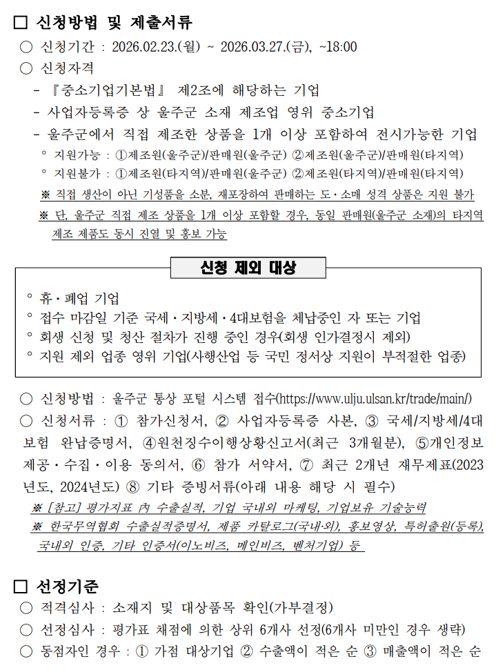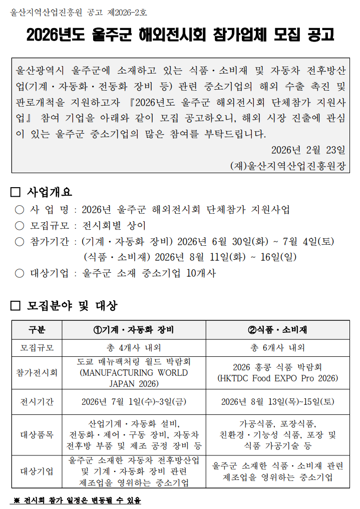 2026년도 울주군 해외전시회 참가업체 모집 공고