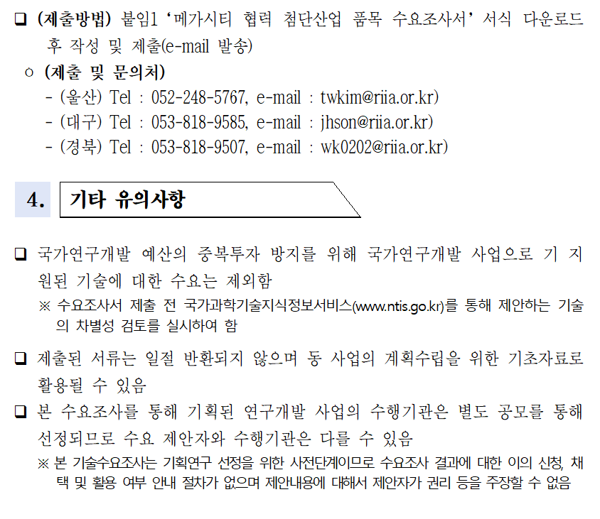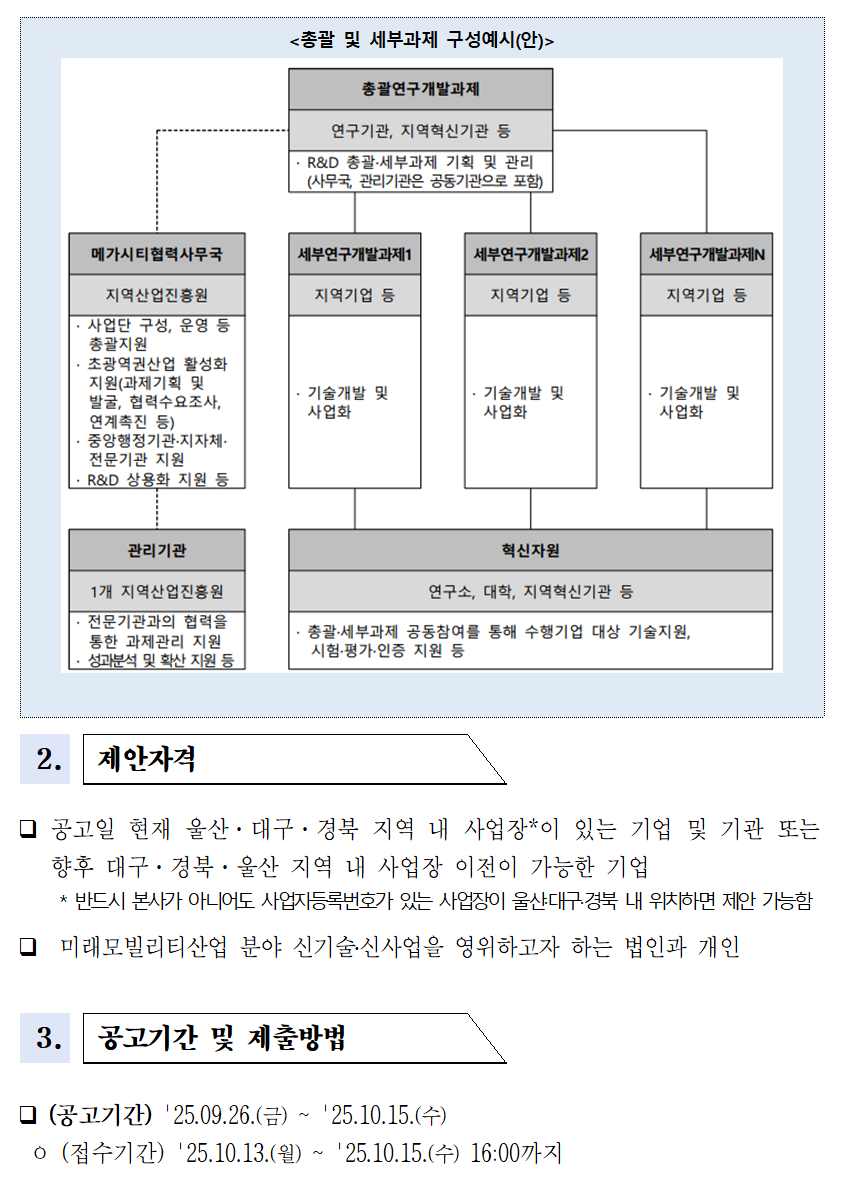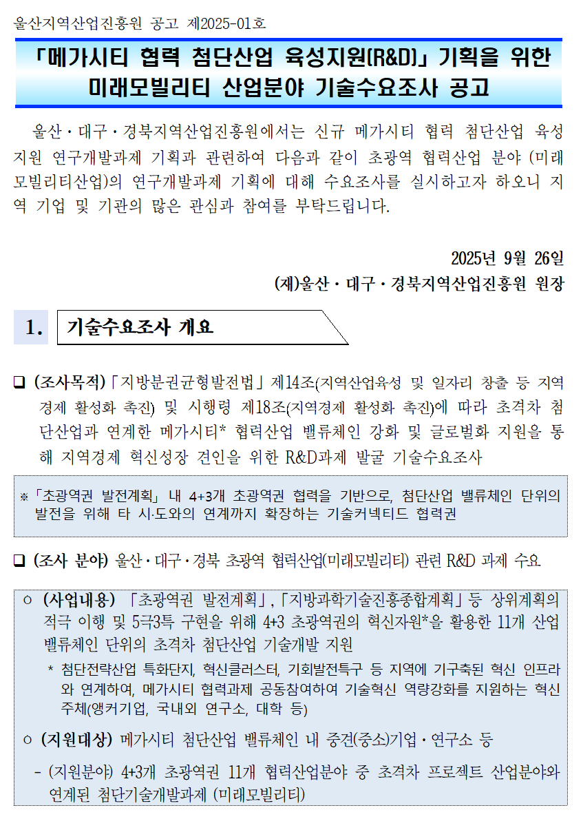 「메가시티 협력 첨단산업 육성지원(R&D)」기획을 위한 미래모빌리티 산업분야 기술수요조사 공고