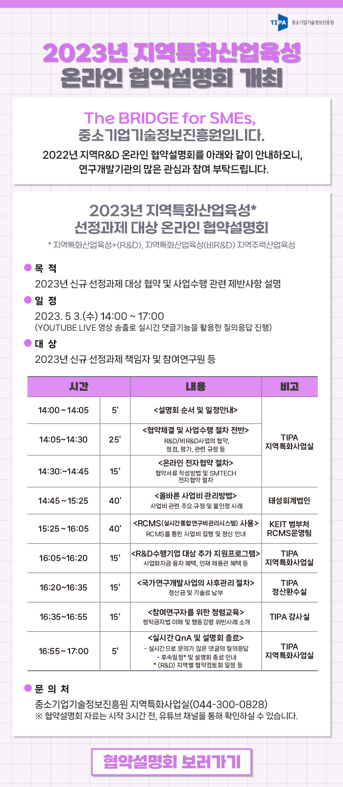 2023년 지역특화산업육성 온라인 협약설명회 개최