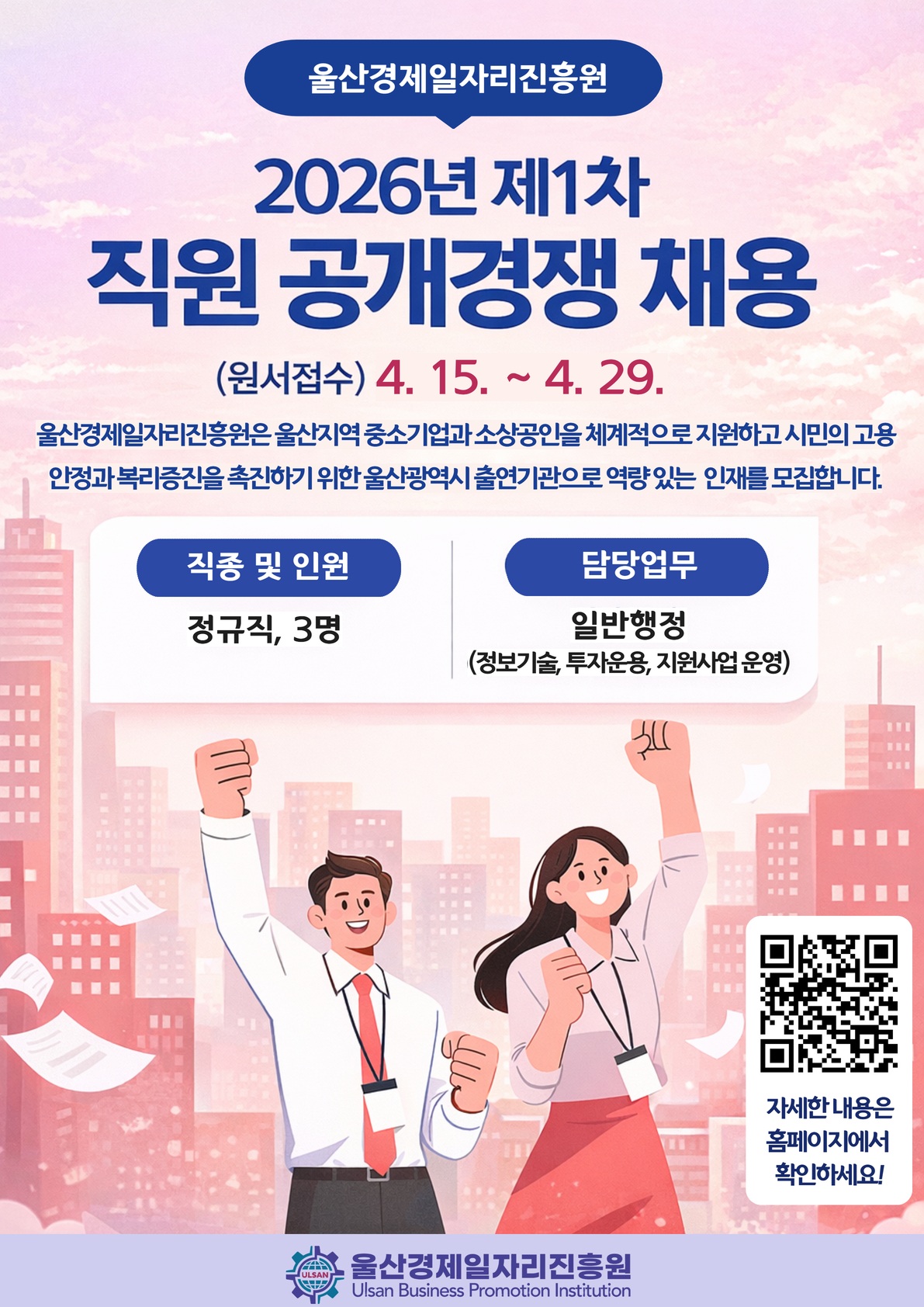 [울산경제일자리진흥원] 2026년 제1차 직원 공개경쟁 채용 공고